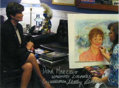 Portrait Artist Marcene Glover has been commissioned by individual National and State House and Senate Members. These portraits are done in a Representational style that conveys each Congressman's and Senator's political views. Glover traveled from DC, NYC, Nevada, to Rhode Island for the live portrait sittings and exhibitions.